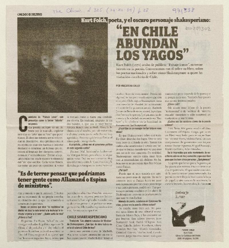 "En Chile abundan los yagos" (entrevista) [artículo] Macarena Gallo.