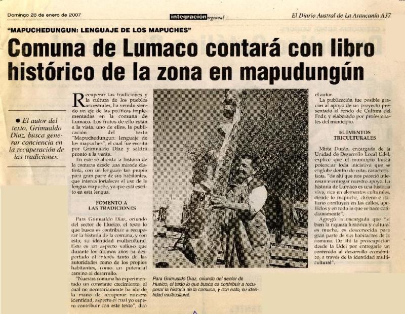Comuna de Lumaco contará con libro histórico de la zona en mapudungún [artículo].