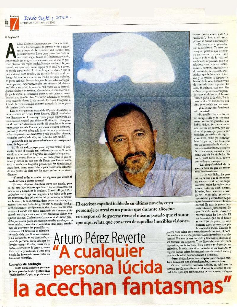 Arturo Pérez Reverte "A cualquier persona lúcida la acechan fantasmas" (entrevista) [artículo].