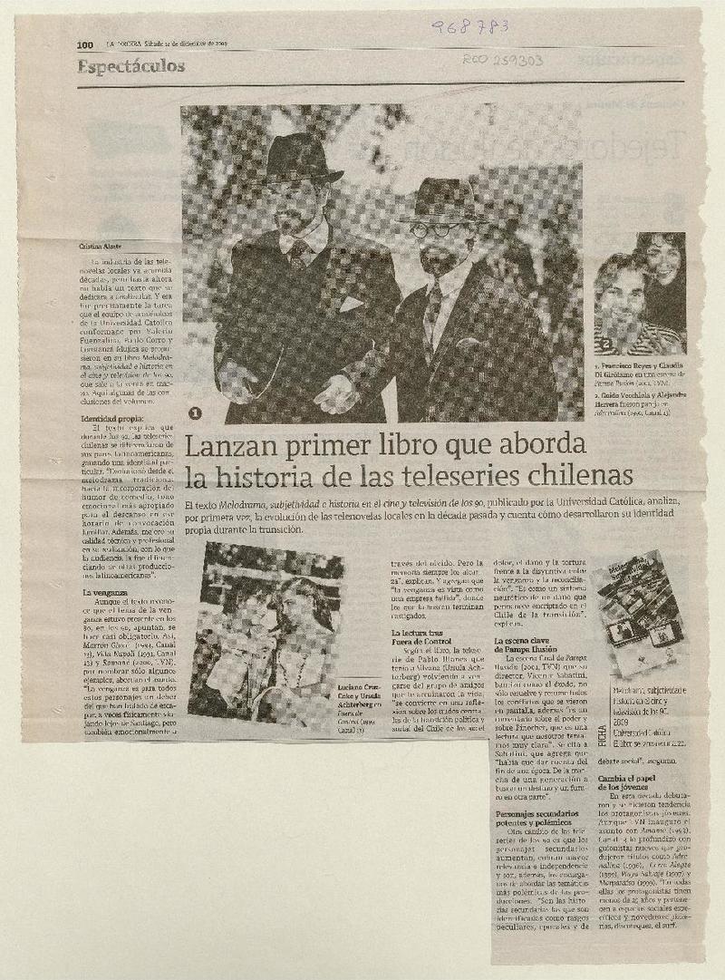 Lanzan primer libro que aborda la historia de las teleseries chilenas [artículo] Cristina Alzate.