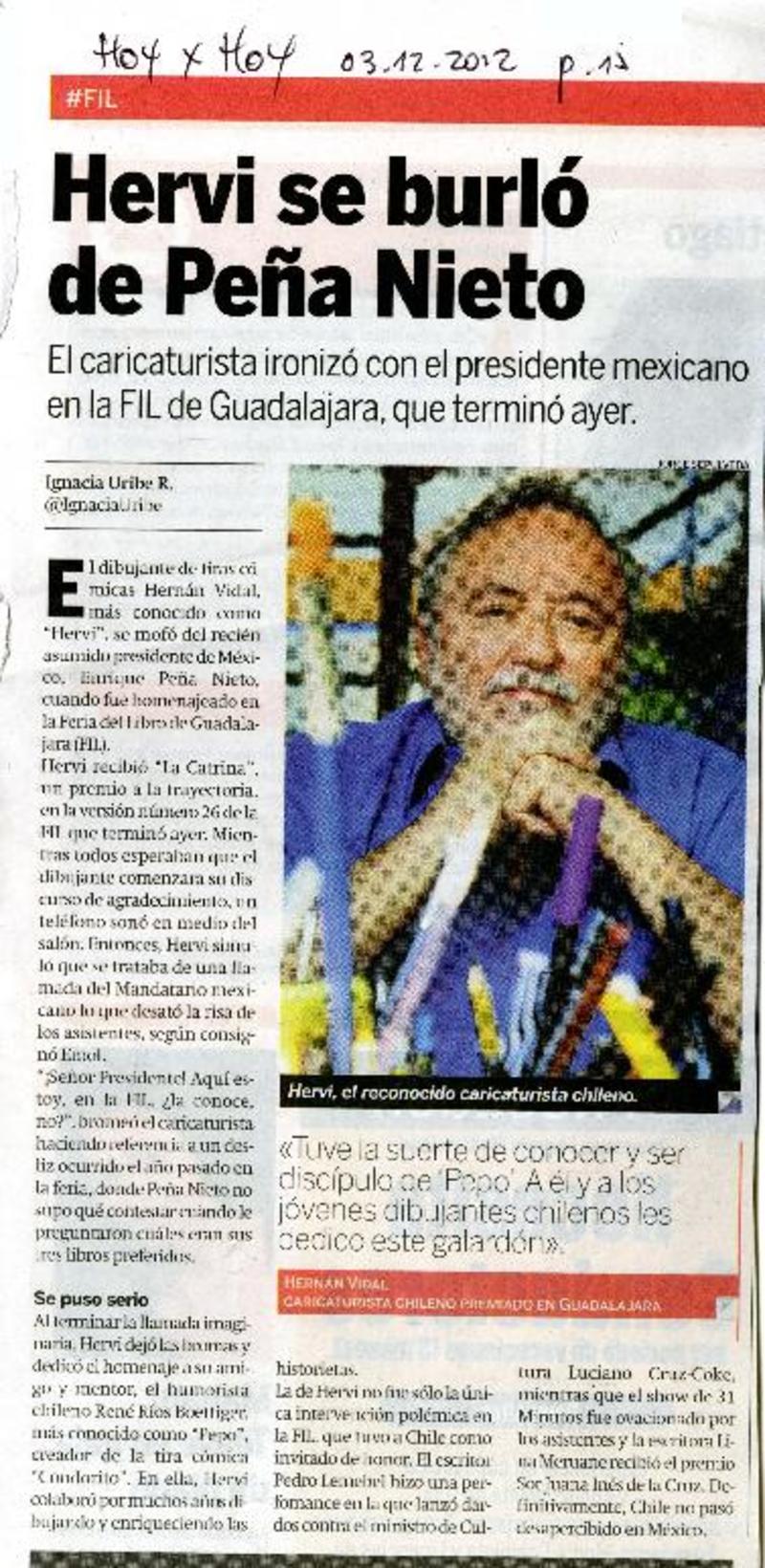 Hervi se burló de Peña Nieto [artículo] Ignacia Uribe R.