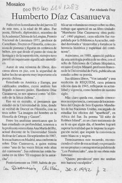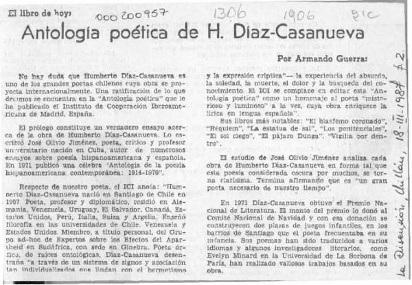 Antología poética de H. Díaz-Casanueva [artículo] Por, Armando Guerra.