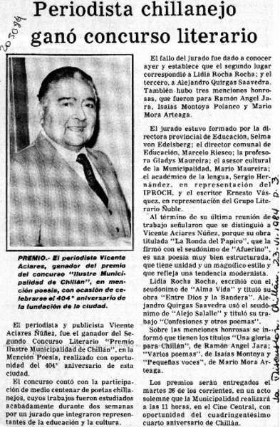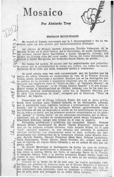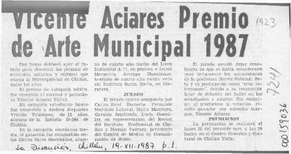 Vicente Aciares Premio de Arte Municipal 1987 [artículo].