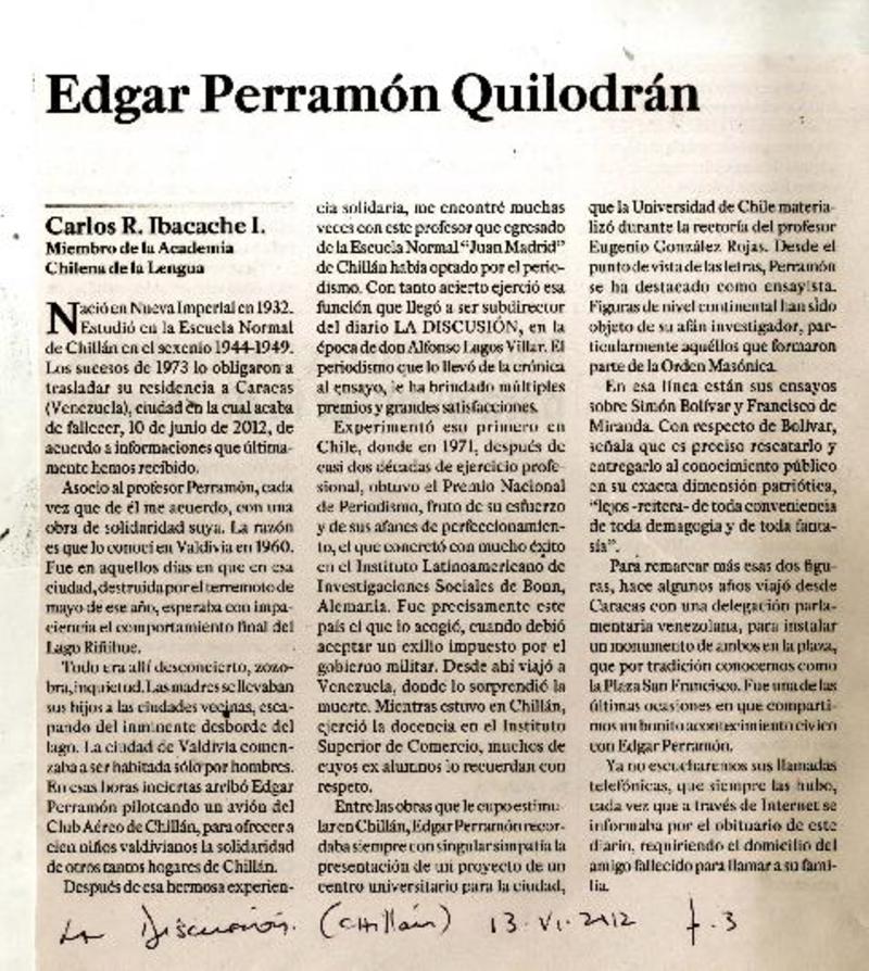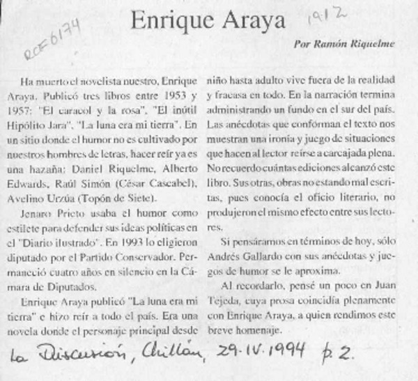 Adiós a don Oreste [artículo] Fernando Arriagada Cortés.