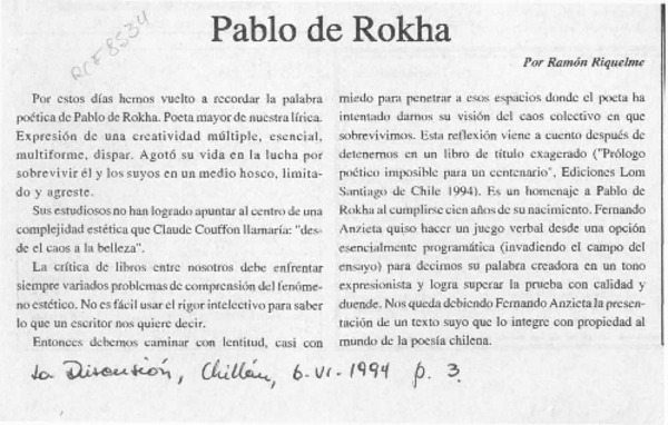 Vicente Huidobro [artículo] Ramón Riquelme.