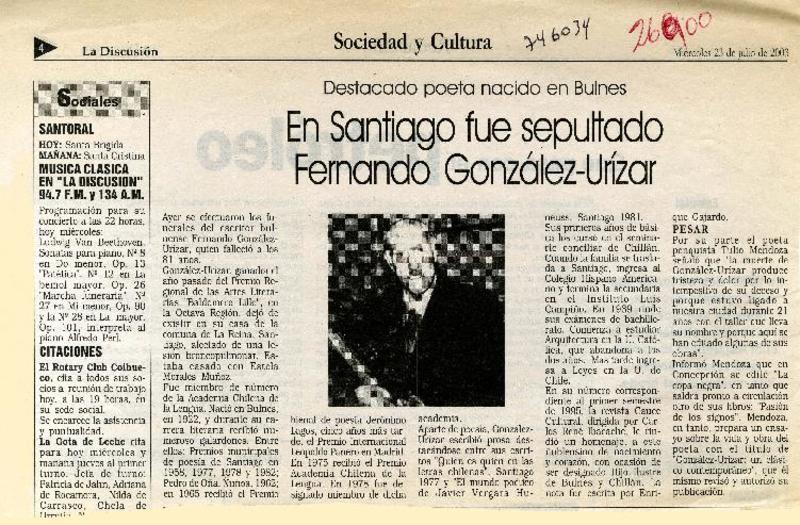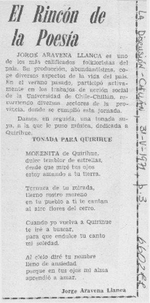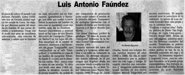 Adiós poeta! [artículo] Fernando Arriagada Cortés.