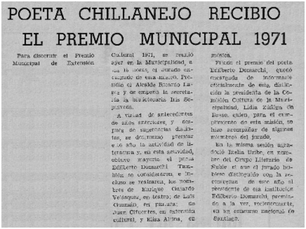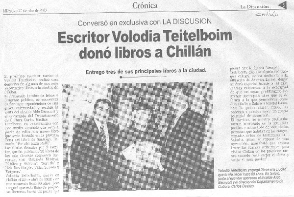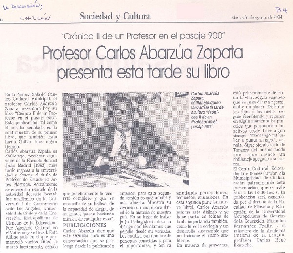 Alejandro Witker, nuevo pilar de la cultura en Chillán Viejo : [entrevistas] [artículo]