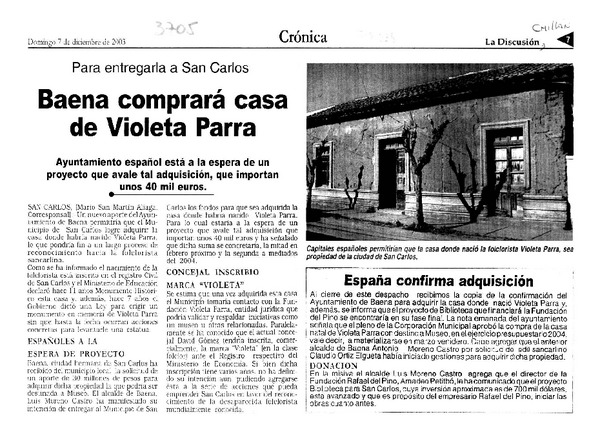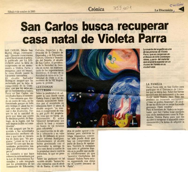 Alcaldesa de San Fabián visita a Parra y se compromete con un "anti" museo [artículo] Carolina Marcos Ch.