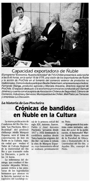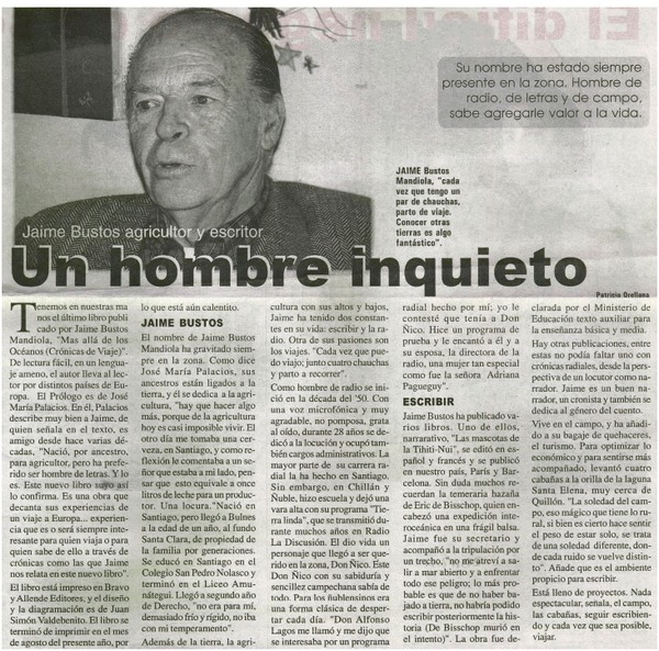 Adolfo Márquez y su libro "Los pincheira, mito y realidad [artículo] Patricia Orellana.