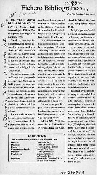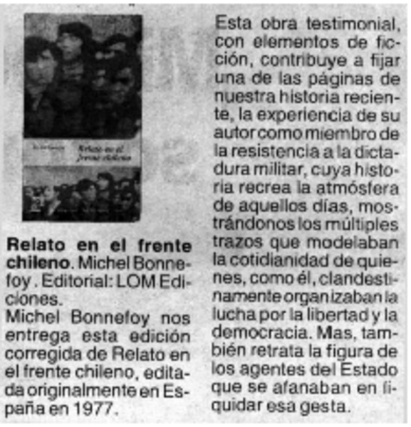 Un "Contacto literario" para todo Chile [artículo] Alfonso Larrahona Kästen.