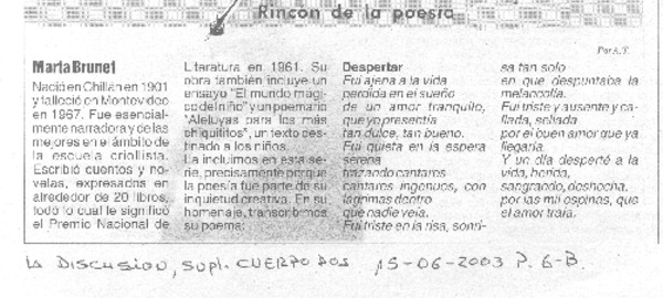 Un homenaje a Marta Brunet [artículo] Carlos González Ugarte.