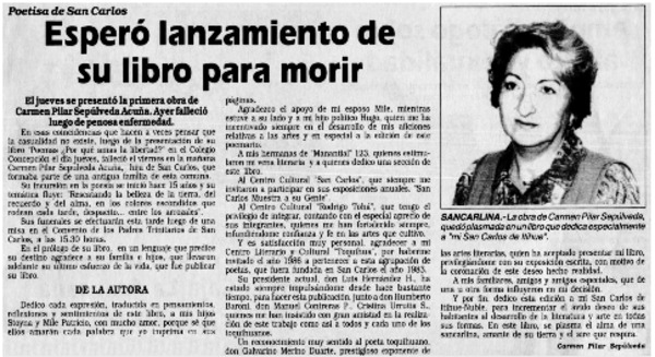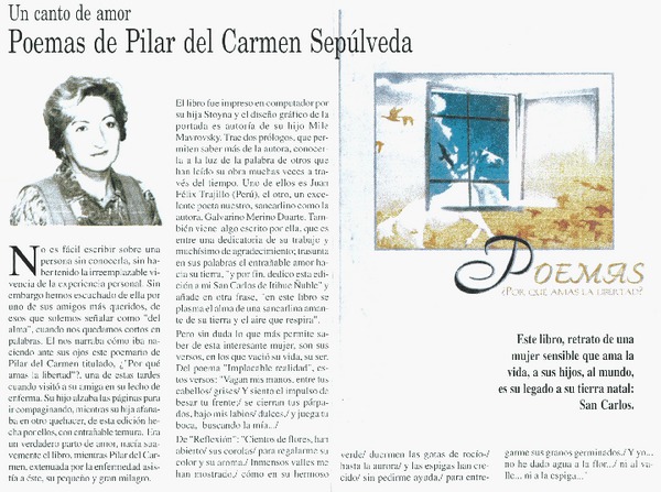 Un canto de amor : Poemas de Pilar del Carmen Sepúlveda [artículo]