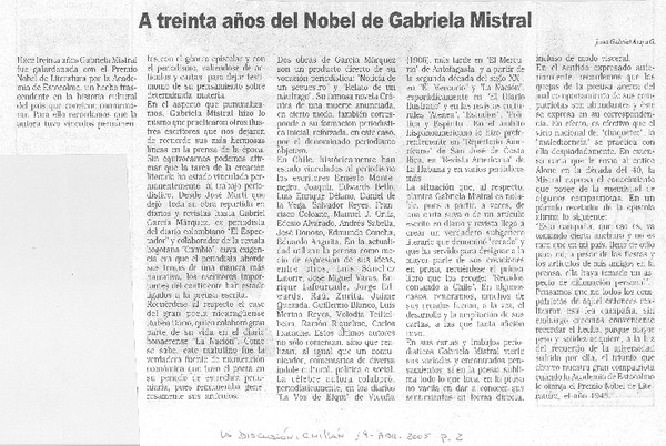 A treinta años del Nobel de Gabriela Mistral [artículo] 7 Juan Gabriel Araya G.