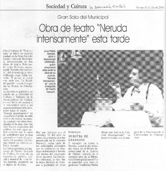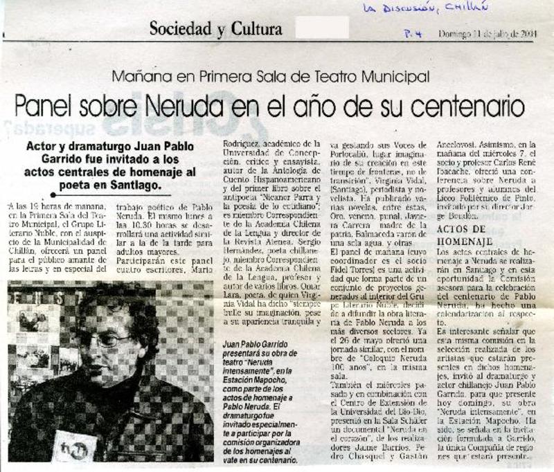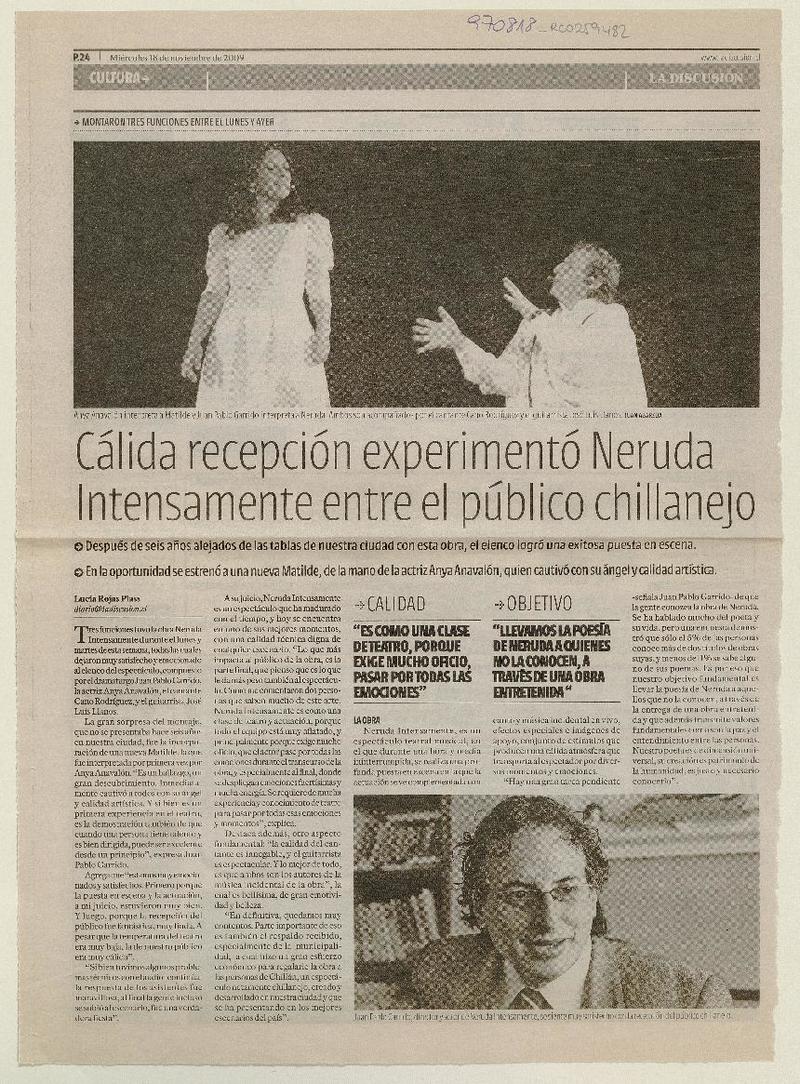 Una Nueva visión de Neruda a través del teatro [artículo].