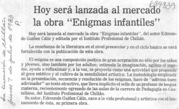 Adivinanzas" [artículo] Luis Alberto Castillo.