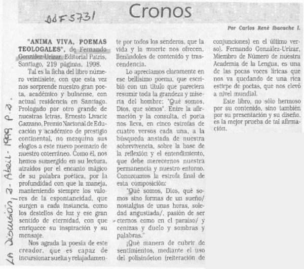 Antología del cuento chileno [artículo] Carlos René Ibacache.