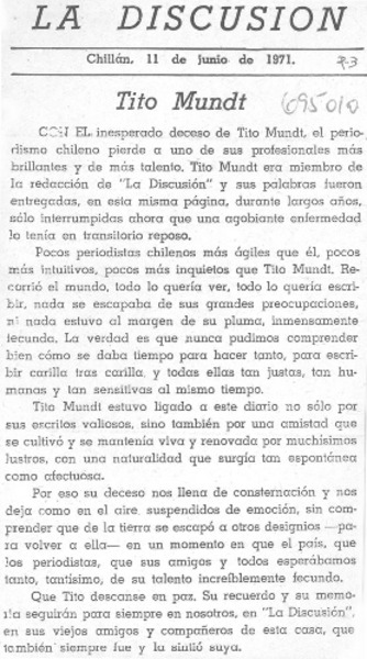Tito Mundt: arquetipo de periodista [artículo] J. Bustos Mandiola.