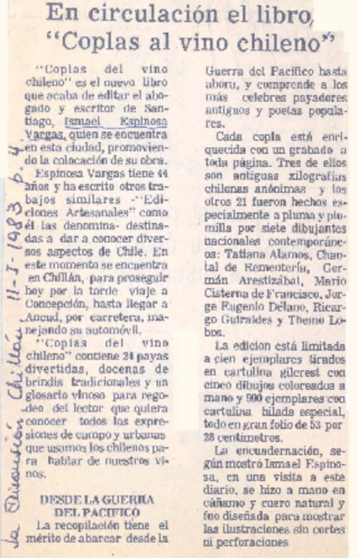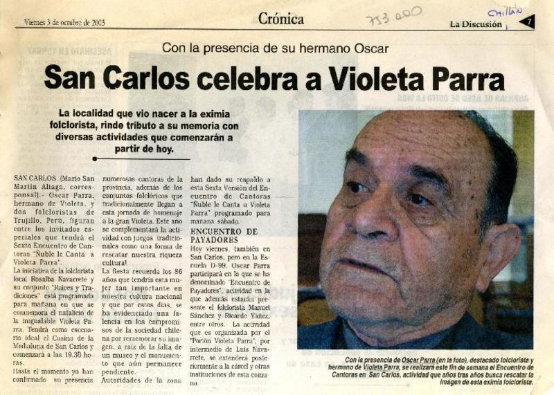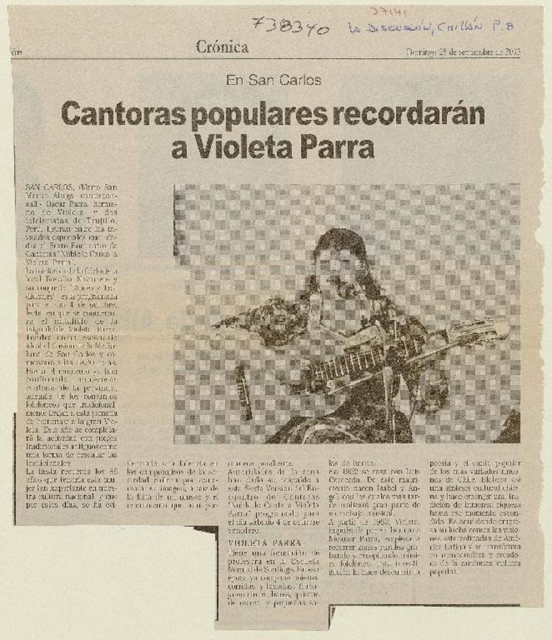 Audio recoge inéditos detalles de la vida chillaneja del clan Parra [artículo] Carolina Marcos.
