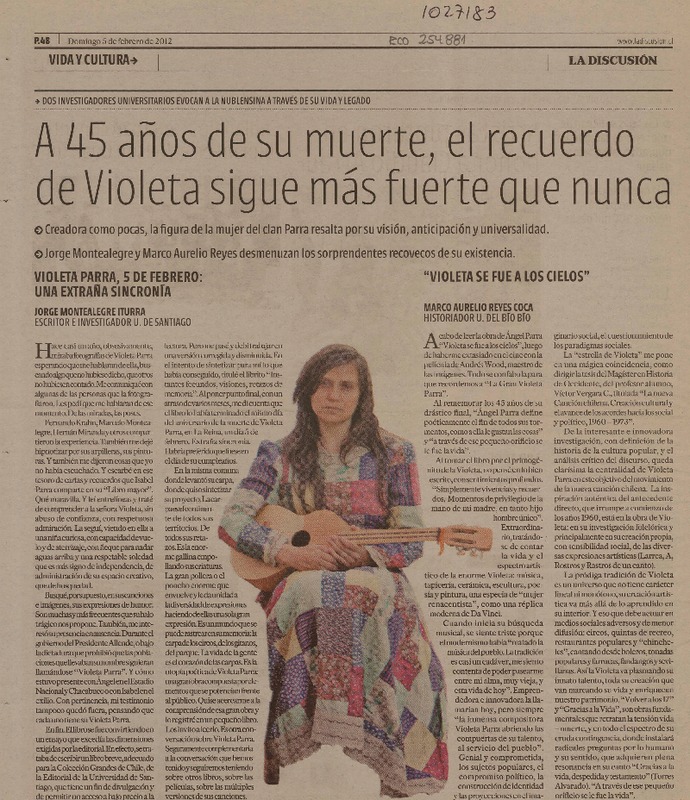 A 45 años de su muerte, el recuerdo de Violeta sigue más fuerte que nunca [artículo].