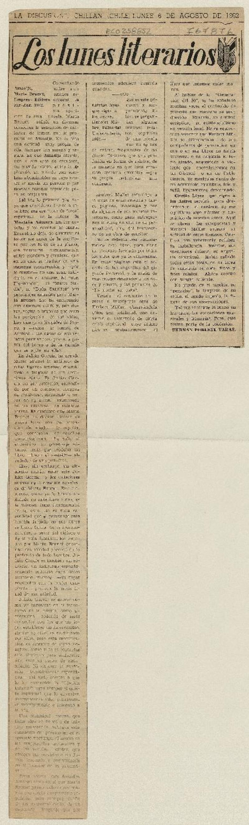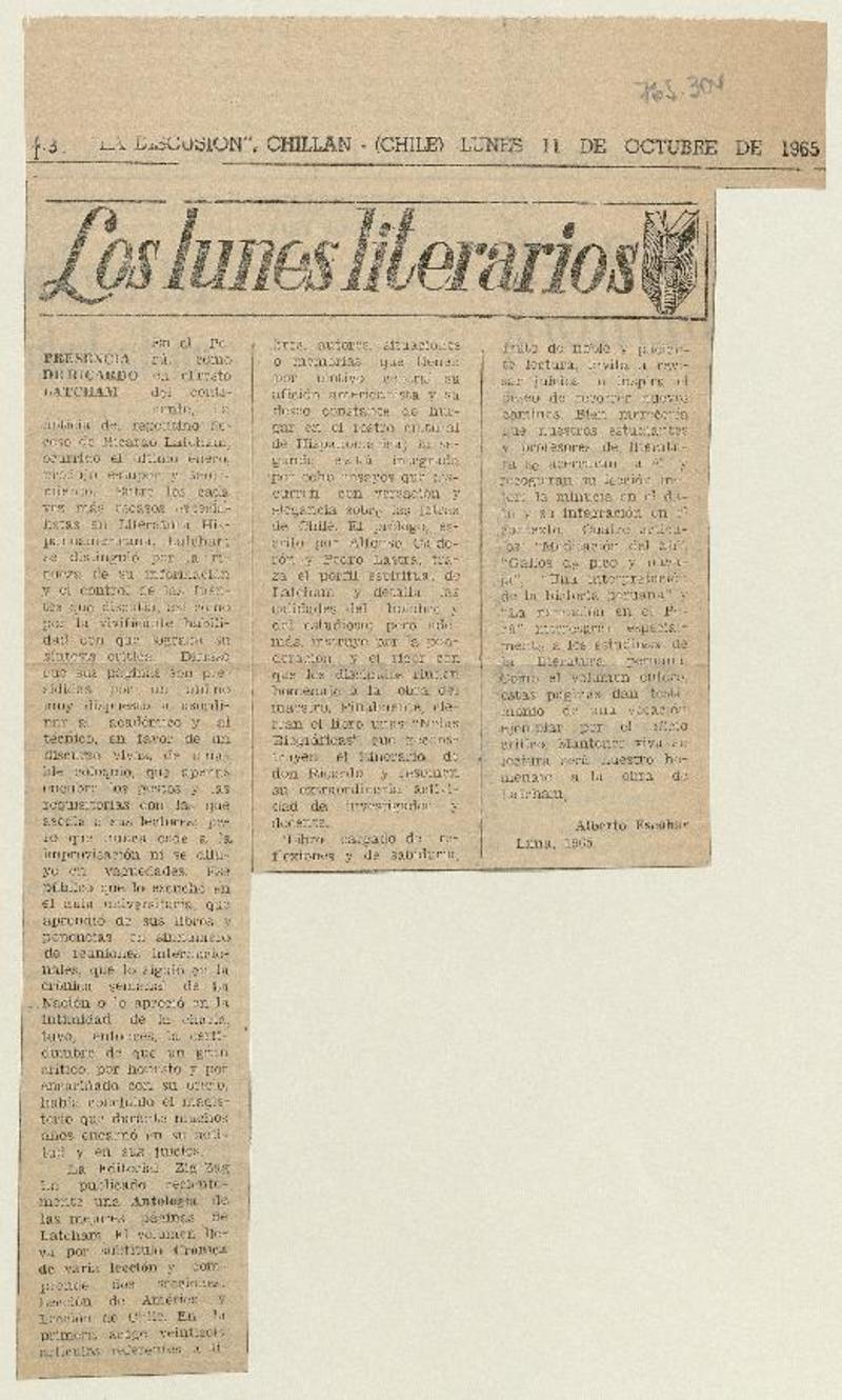 Aporte a la historia de las letras chilenas [artículo] Tito Castillo.