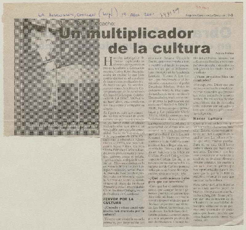 Un multiplicador de la cultura : [entrevistas] [artículo] Patricia Orellana.