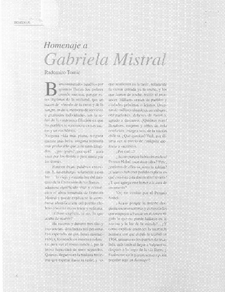 Homenaje a Gabriela Mistral [artículo] Radomiro Tomic.