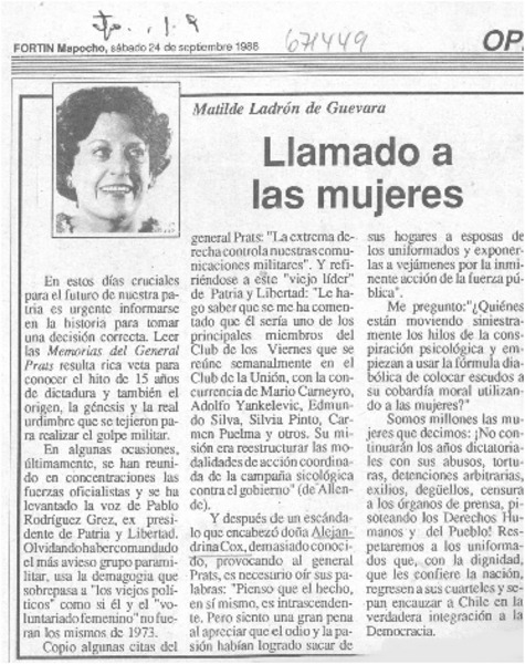 Llamado a las mujeres [artículo] Matile Ladrón de Guevara.