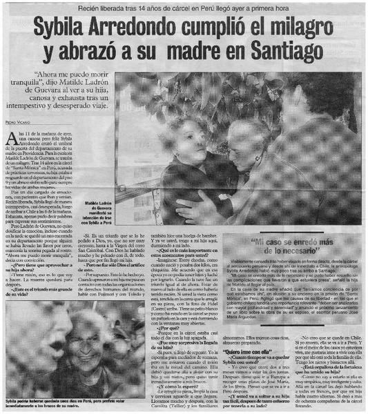 Sybila Arredondo cumplió el milagro y abrazó a su madre en Santiago [entrevistas] [artículo] : Pedro Vicario.