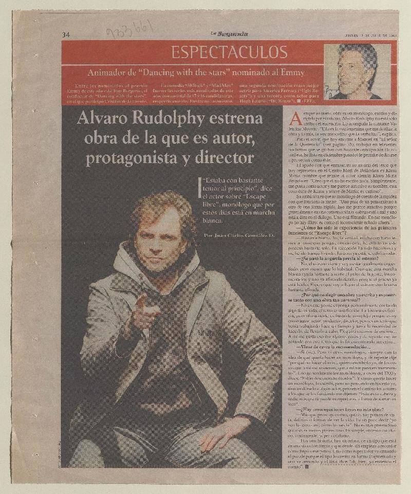 Álvaro Rudolphy estrena obra de la que es autor, protagonista y director [entrevista] [artículo] : Juan Carlos González O.