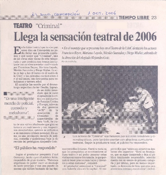 Teatro "Criminal" : Llega la sensación teatral de 2006 [artículo] por Alvaro Peña.