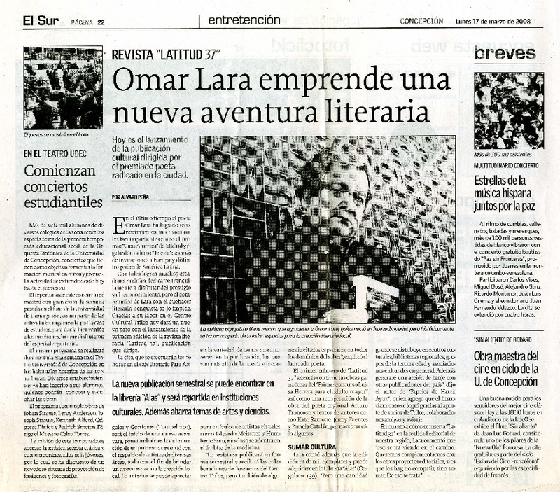 Omar Lara emprende una nueva aventura literaria [artículo]Alvaro Peña y Peña.