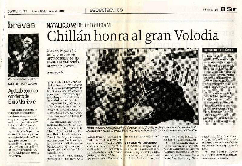 Chilllán honra al gran Volodia [artículo]Alvaro Peña.