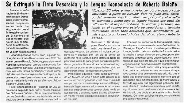 Se extinguióla tinta descreída y la lengua iconoclasta de Roberto Bolaño. [artículo]