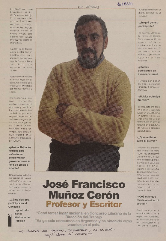Josè Francisco Muñoz Seròn, profesor y escritor (entrevista) [artículo]