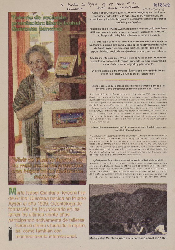 Talento de reciente premiaciòn, Marìa Isabel Quintana Sànchez [artículo]