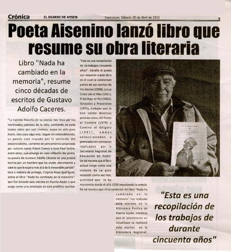 Poeta aisenino lanzó libro que resume su obra literaria. [artículo]