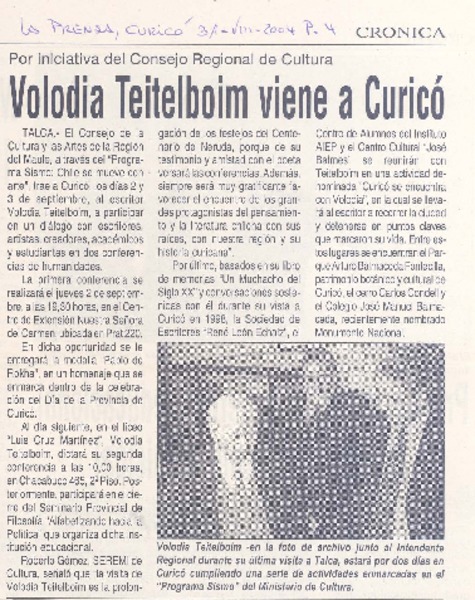 Volodia Teitelboim con Curicó en el corazón [artículo] JPJ