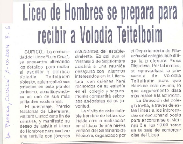 Volodia Teitelboim viene a Curicó [artículo]
