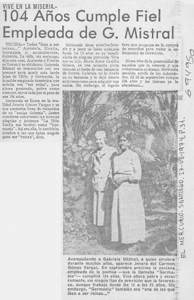 Un favorable encuentro con la divina Gabriela [artículo] Catalina Carrasco de Bustamante.