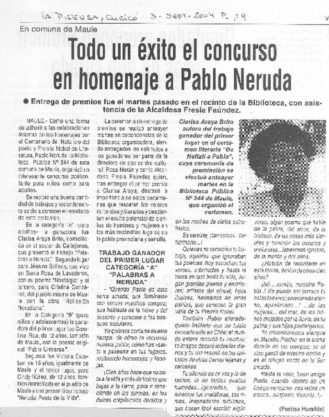 Todo un éxito el concurso en homenaje a Pablo Neruda [artículo]