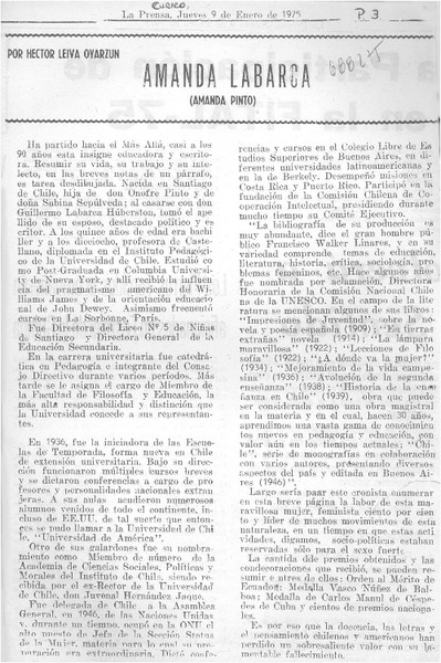 Amanda Labarca [artículo] Héctor Leiva Oyarzún.