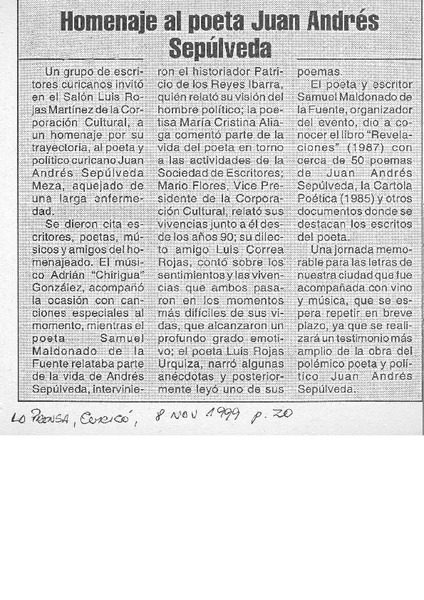 Amigo entre verso y prosa [artículo] Homero Sepúlveda Pérez.
