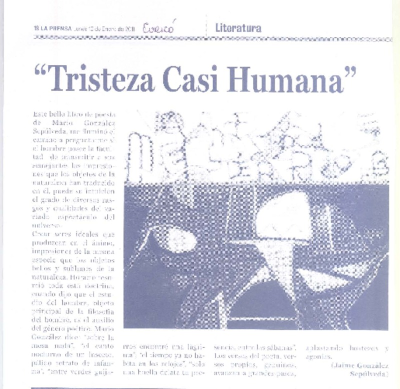Tristeza casi humana [artículo] Jaime González Sepúlveda.