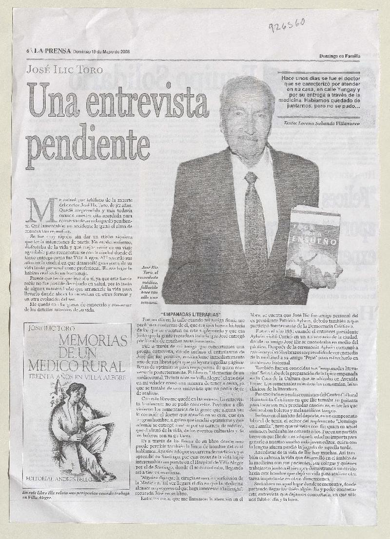 Una entrevista pendiente [artículo] Lorena Sabando Villanueva.