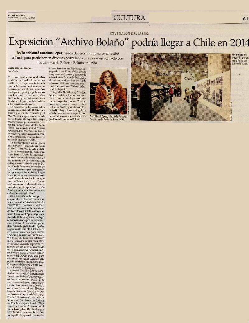 Exposición "archivo Bolaño" podría llegar a Chile en 2014 [artículo] María Teresa Cárdenas.
