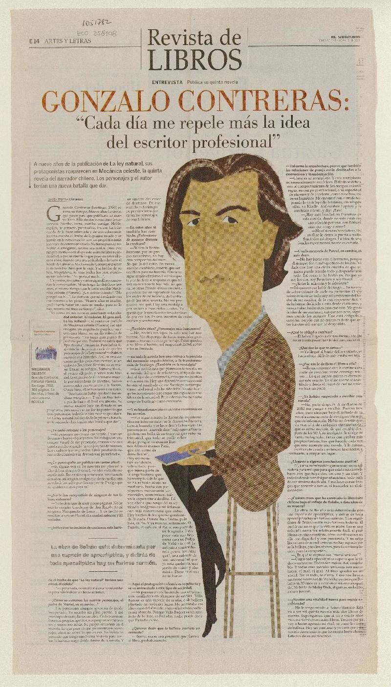 Gonzalo Contreras: "Cada día me repele más la idea del escritor profesional" [artículo] María Teresa Cárdenas