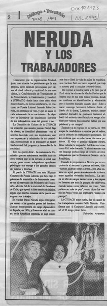 Neruda y los trabajadores [artículo] Galvarino Arqueros.