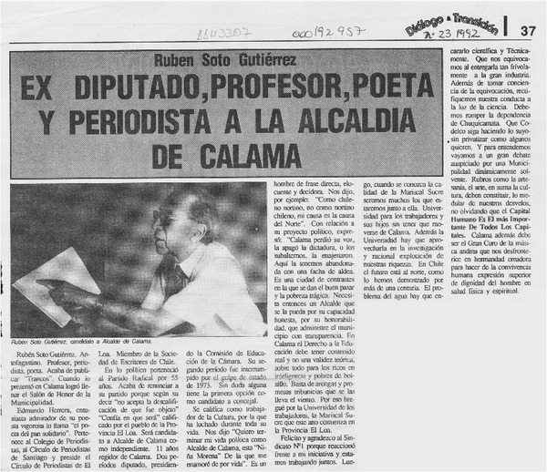 Ex diputado, profesor, poeta y periodista a la alcaldía de Calama [artículo].