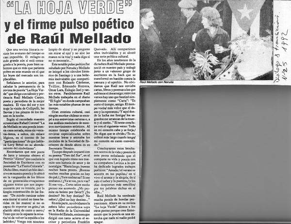 "La Hoja verde" y el firme pulso poético de Raúl Mellado [artículo].