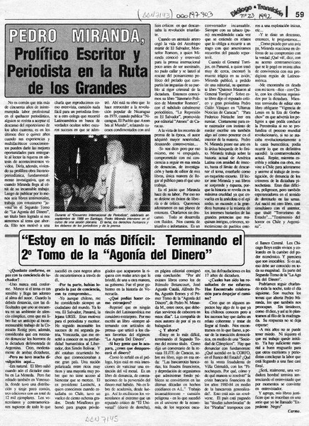 Pedro Miranda, prolífico escritor y periodista en la ruta de los grandes [artículo].
